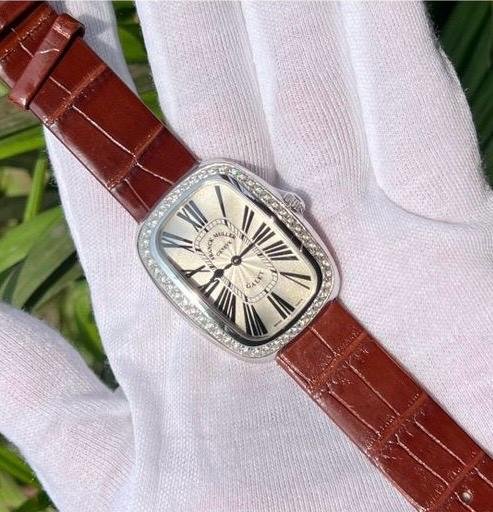 Indulge in luxury with the Franck Muller Galet Women’s watch, a timeless piece that exudes elegance and sophistication. Encased in stainless steel and adorned with diamonds, this exquisite timepiece offers a perfect blend of style and functionality. The strap crafted from fine leather ensures both comfort and durability. With a generous 60% discount on retail, this brand new 2024 release presents an irresistible opportunity to own a high-end watch at an unbeatable value. Each watch comes as a full set, guaranteeing a seamless unboxing experience for the discerning buyer.
