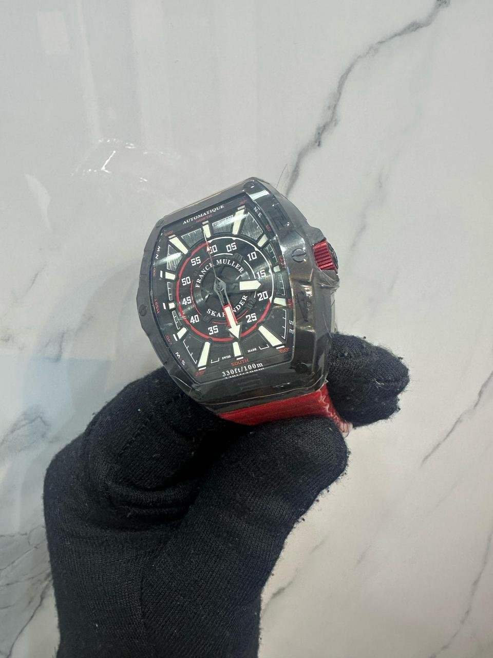 The Franck Muller Skafander™️ is a bold and innovative dive-inspired timepiece that combines high-performance engineering with standout aesthetics. Built using titanium, carbon, and stainless steel, it offers lightweight durability and modern appeal. The scratch-resistant sapphire crystal and deployment buckle add to its premium feel, making it the perfect fusion of sport and luxury.