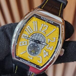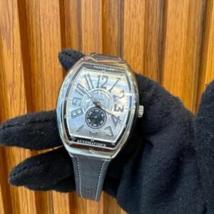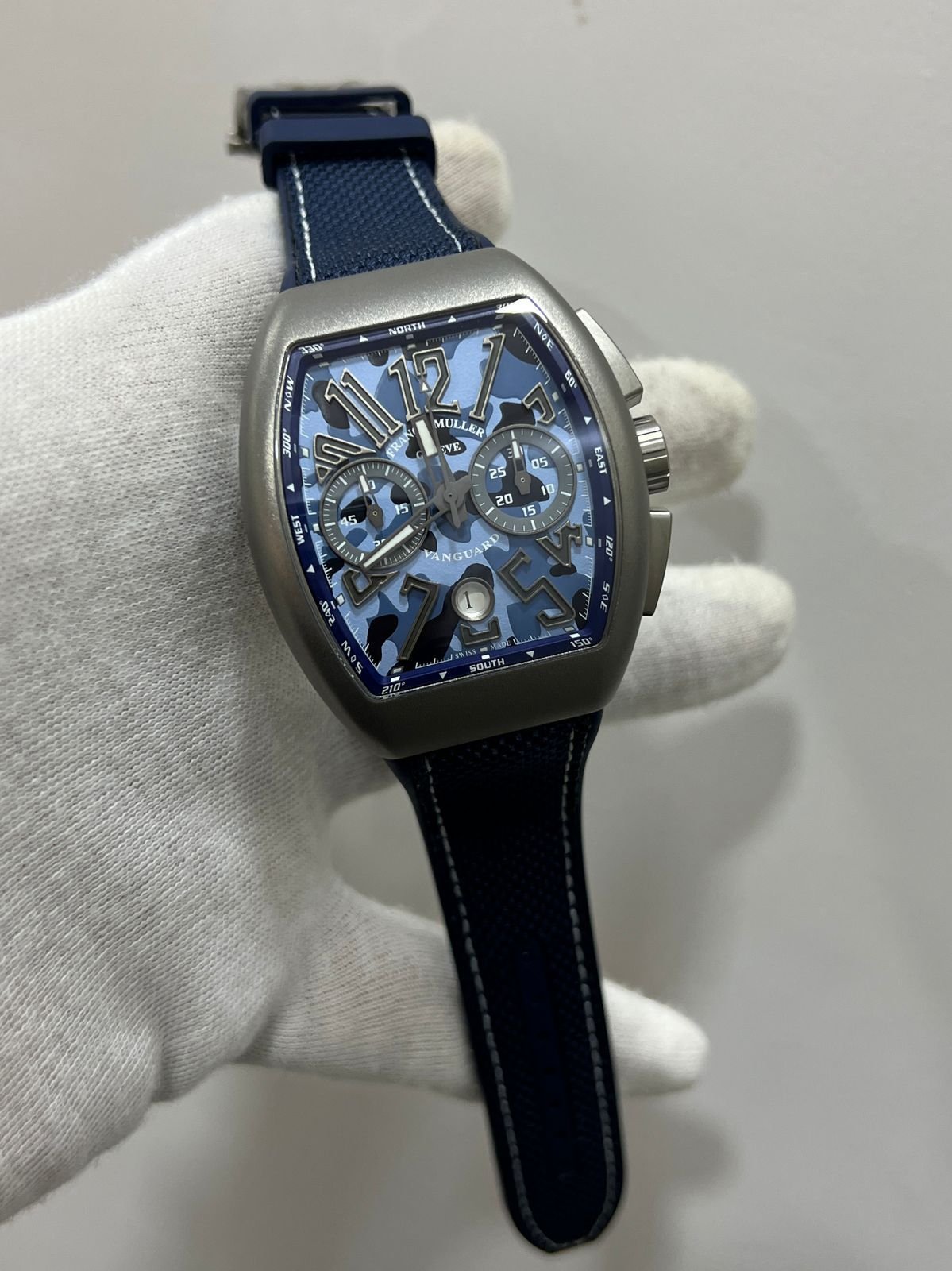 A bold and rugged chronograph from Franck Muller’s Vanguard series, this piece features a titanium case with a striking blue camouflage dial. The perfect blend of sporty and unique styling, offered at an unbeatable 50% discount.