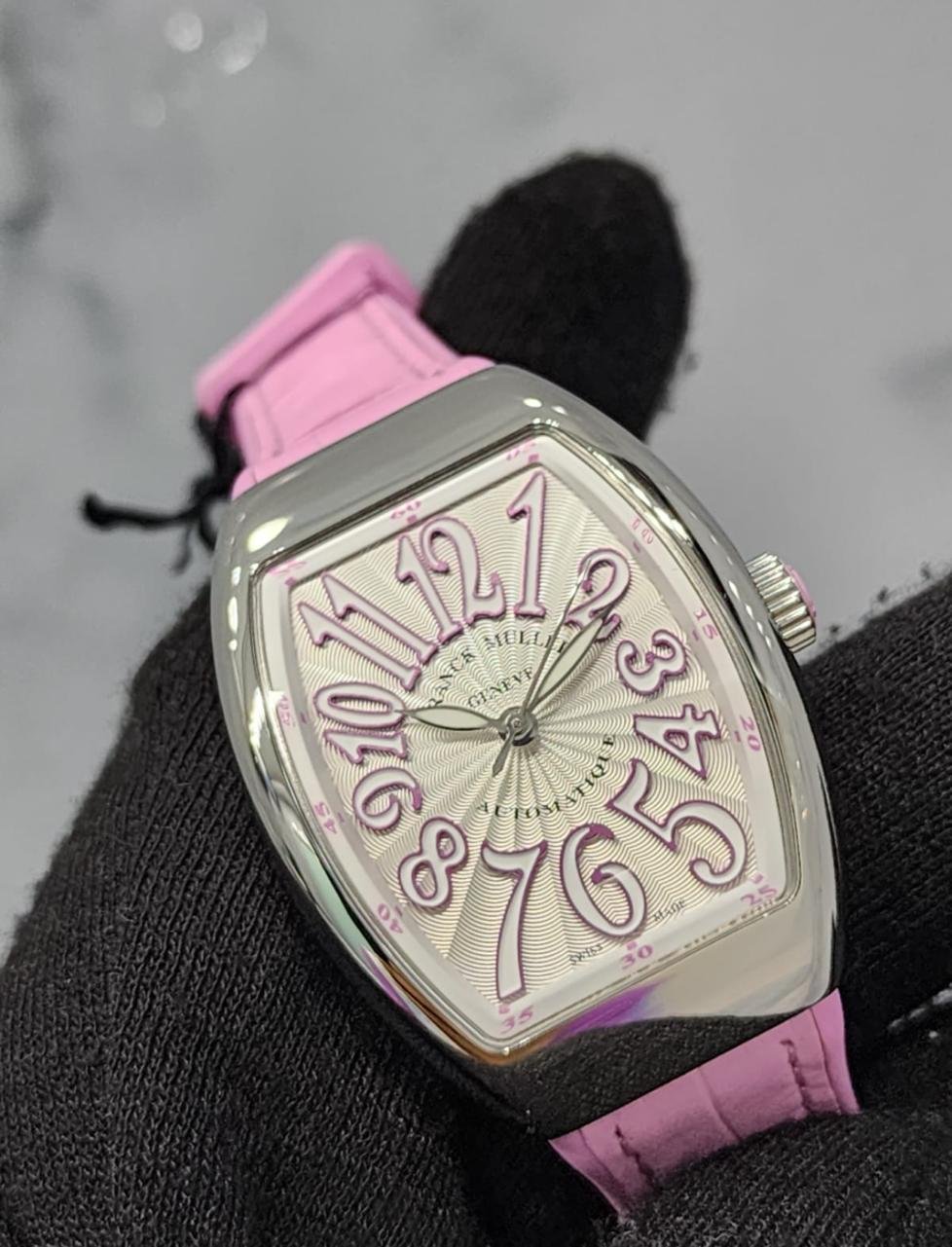 A perfect blend of elegance and sophistication, the Franck Muller Vanguard Lady Automatic features striking pink numerals and an open caseback that reveals the intricate automatic movement. Ideal for those who appreciate both form and function.