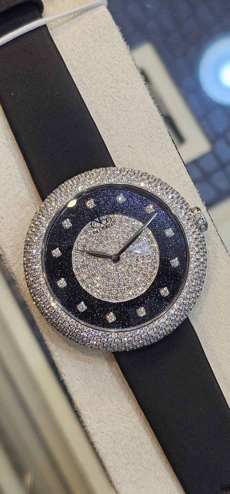 A stunning Jacob & Co Brilliant timepiece with a unique astronomy-inspired dial and pavé set diamonds. Perfect for those who appreciate both luxury and celestial beauty.