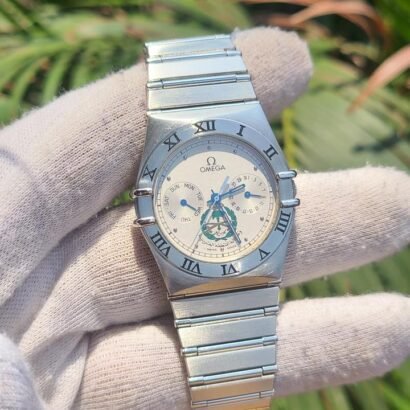 A rare collector’s piece, the Omega Constellation Saudi Royal Guard edition stands out with its iconic emblem on the dial. This elegant 35mm stainless steel timepiece delivers both heritage and functionality, making it a prized find for enthusiasts.