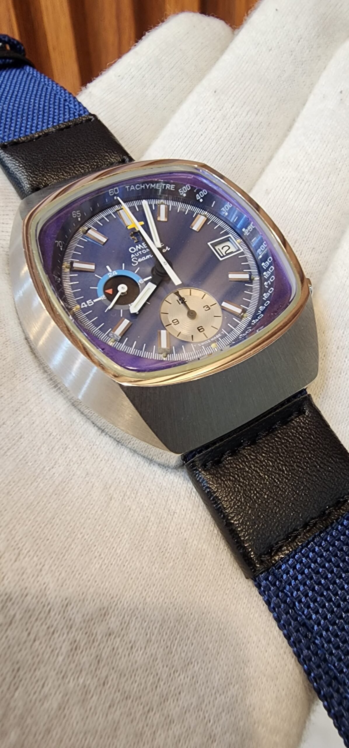 The Omega Seamaster JEDI, a revered timepiece among collectors, embodies the spirit of adventure and craftsmanship. This vintage watch, meticulously restored and serviced, boasts a unique character with its repainted dial ring and aftermarket strap while retaining its originality in other aspects. A perfect blend of heritage and functionality, it’s ready to accompany you on your next journey.