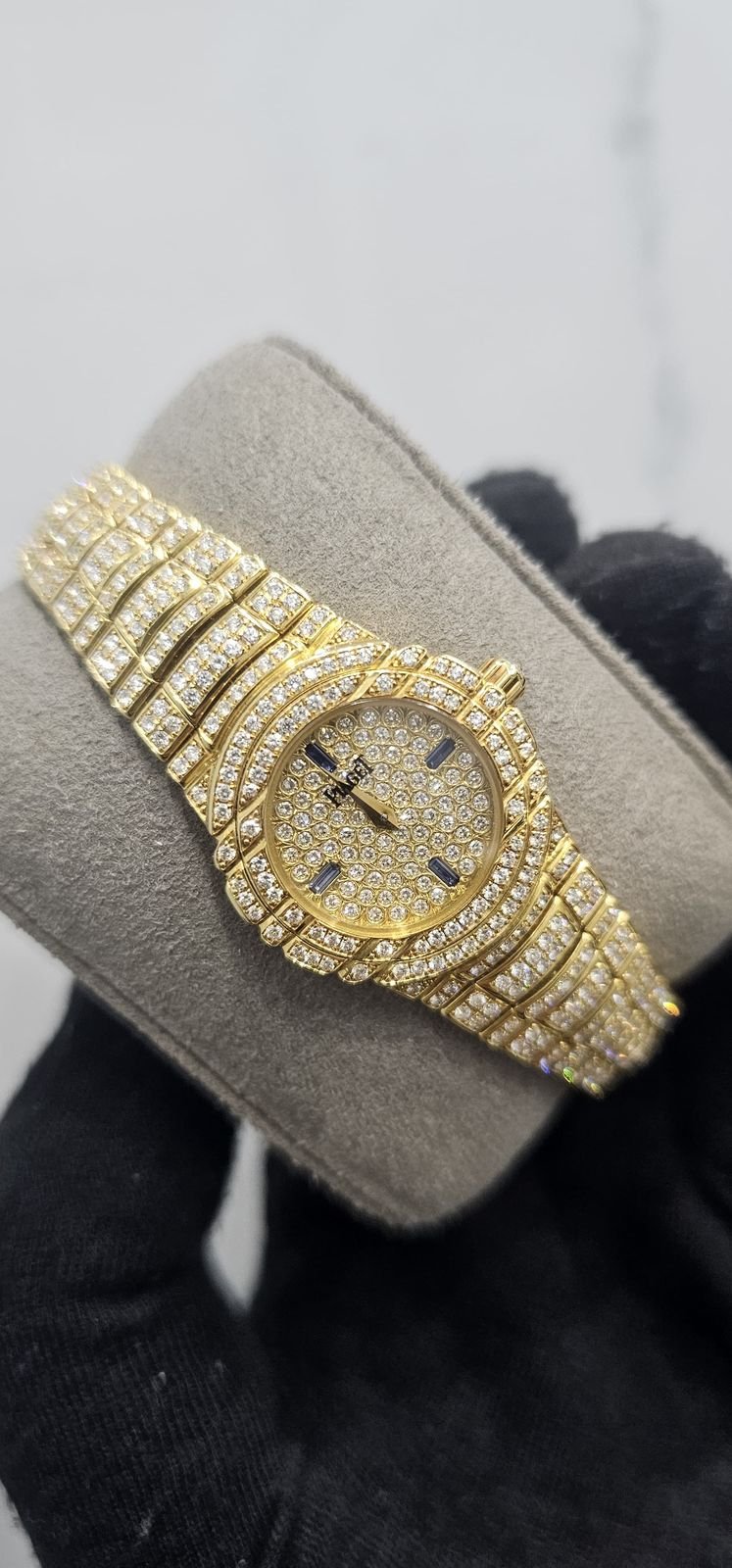 – It comes with gold hands and a diamond-set Piaget solid gold link bracelet.