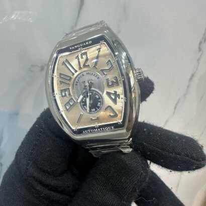 The Franck Muller Vanguard Slim Vintage blends timeless elegance with contemporary sophistication. Its exposed movement and slim profile make it a standout piece for those who appreciate intricate mechanics and refined style. Housed in polished stainless steel and protected by sapphire crystal, this timepiece is both durable and effortlessly stylish.